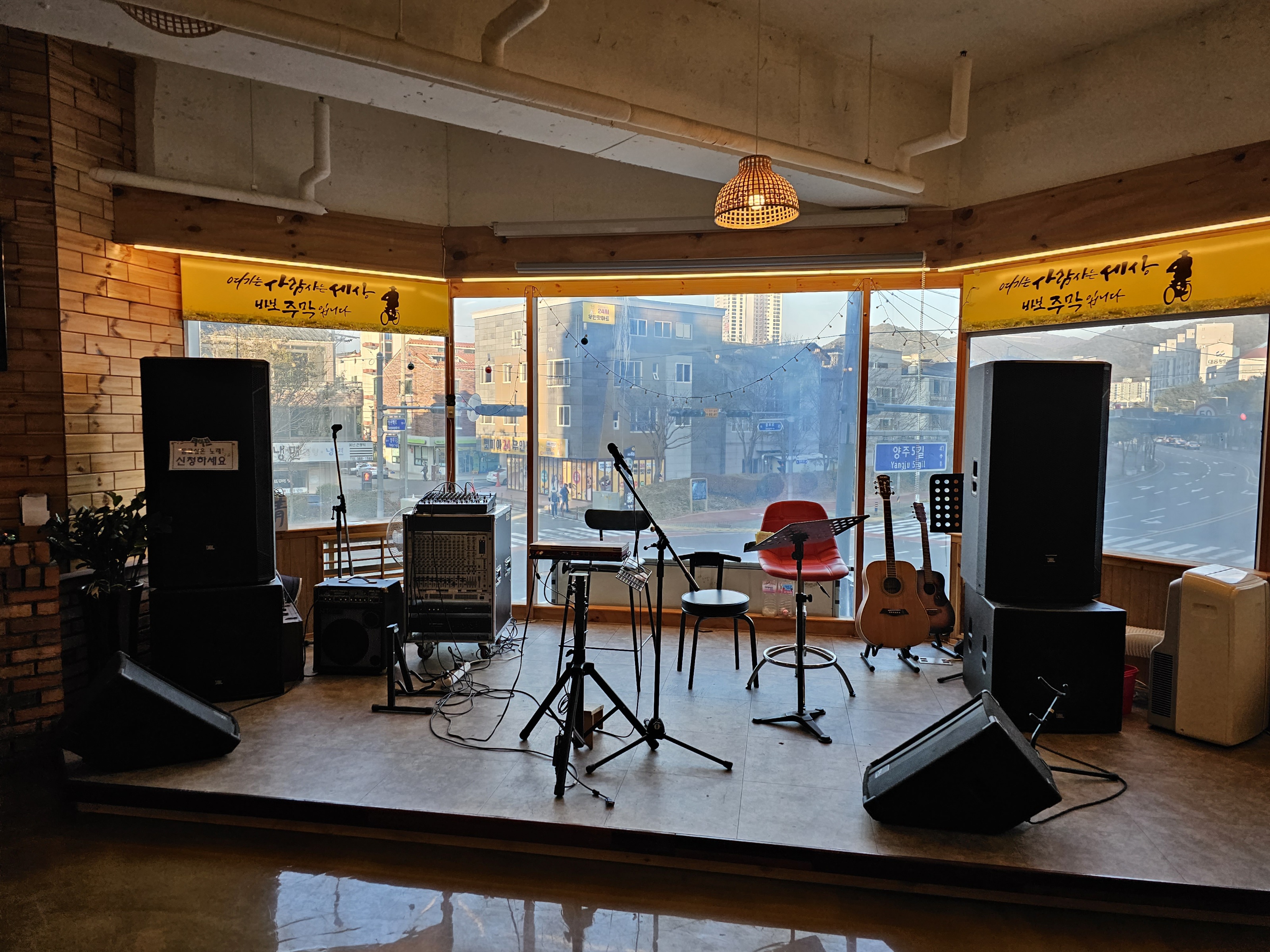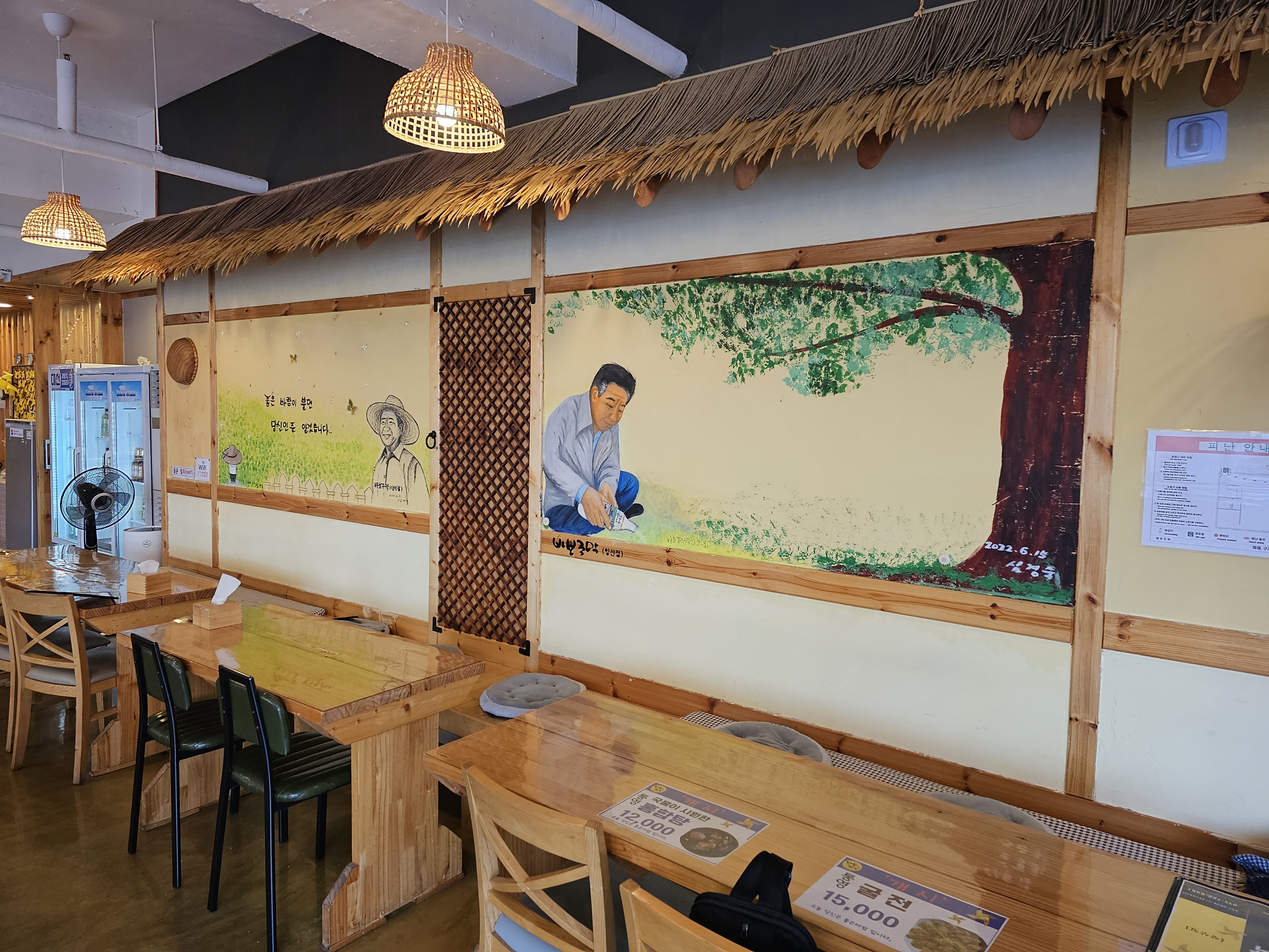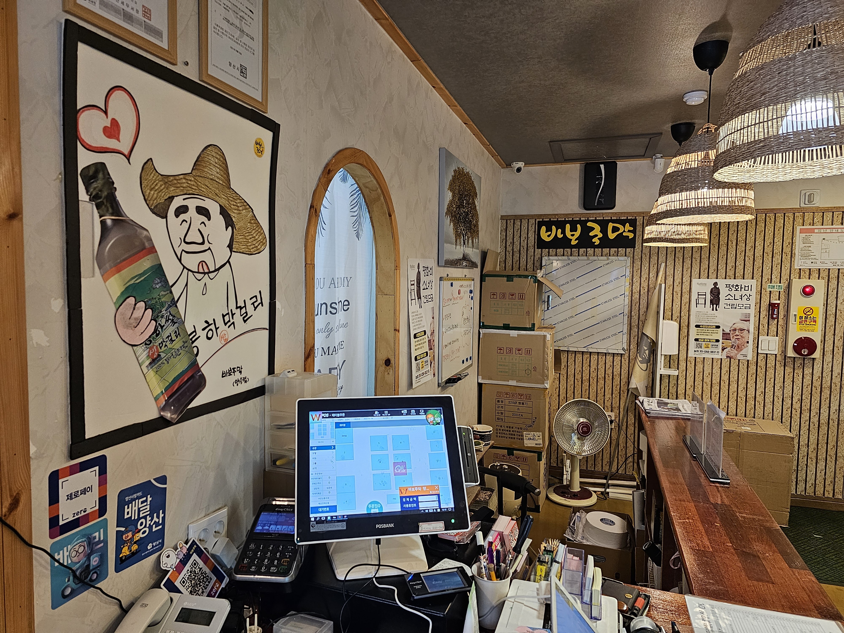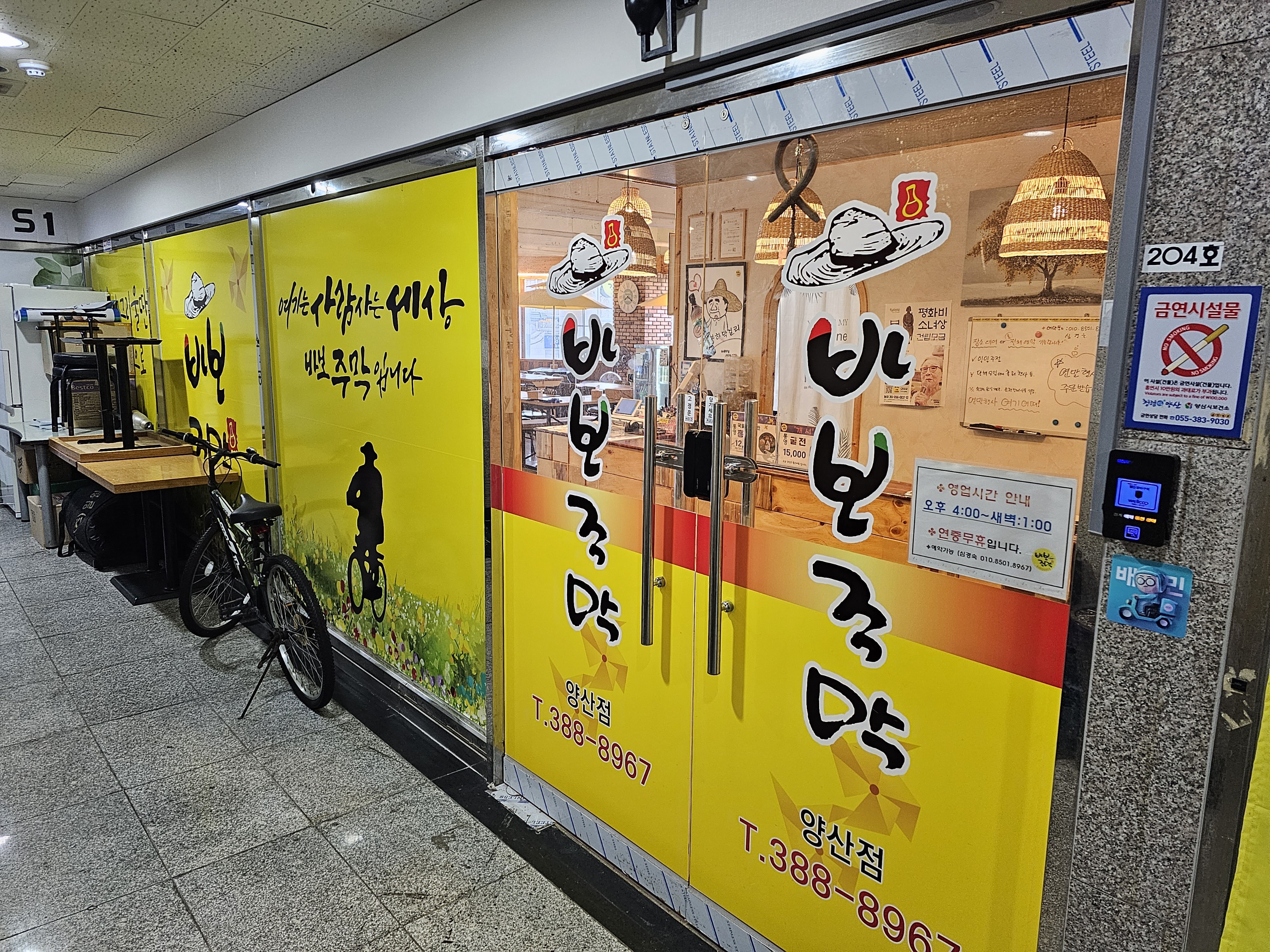 양산 신도시 소방서 블록의 끝에 있는 바보 주막은 2층에 자리 잡고 있다.