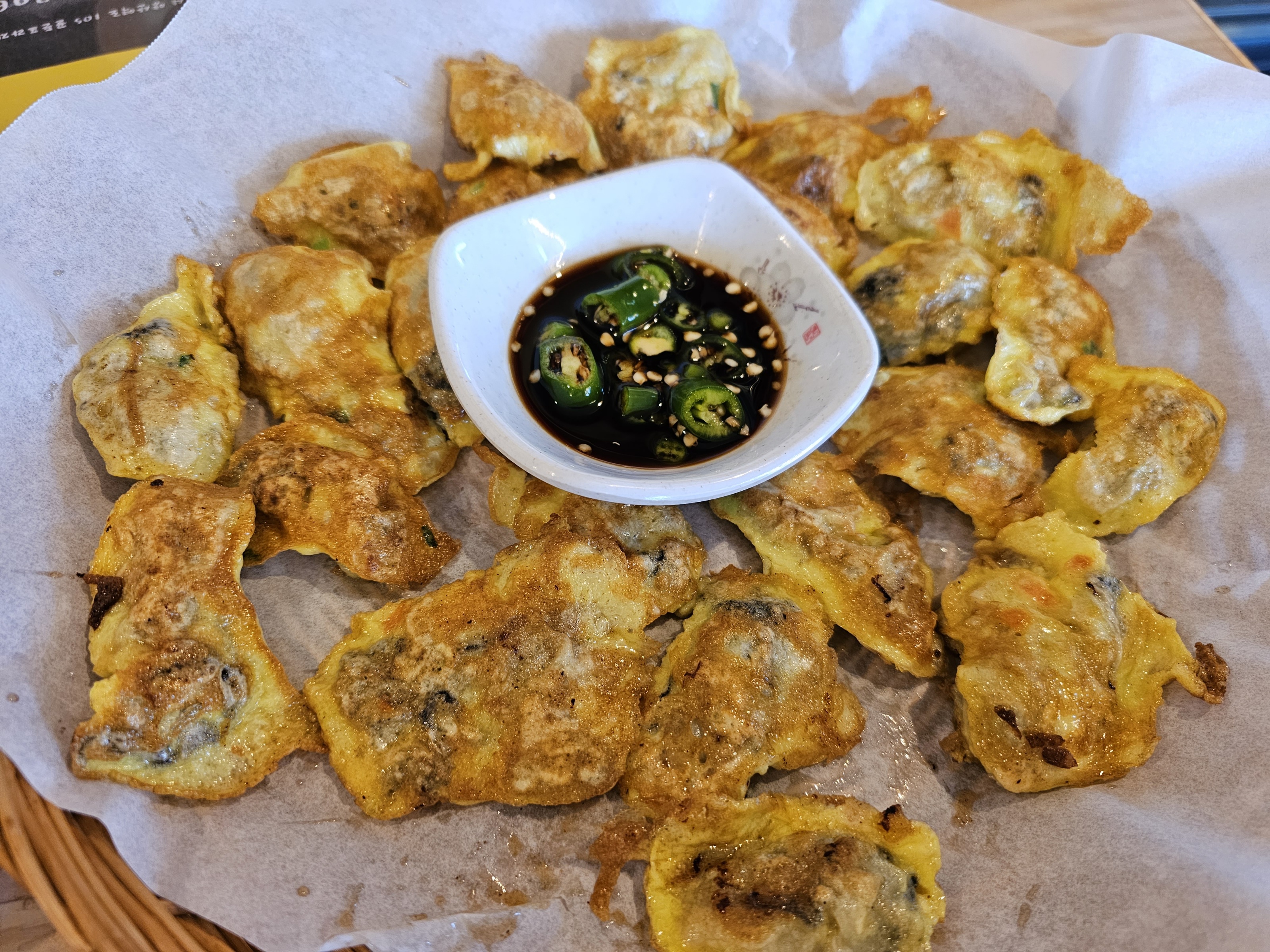따뜻하게 구워 갓 내온 굴전이 맛이 없을 리가 없다.