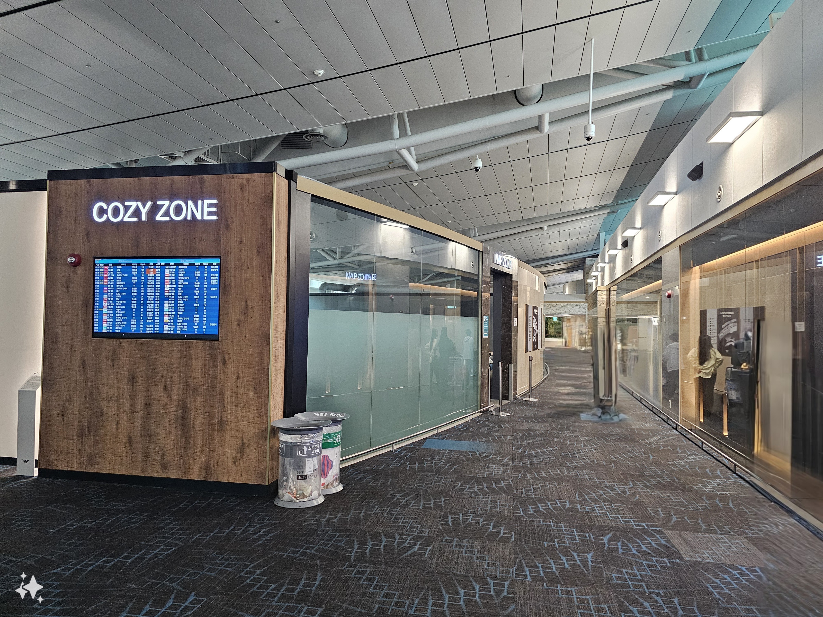코지 존이라고 인터넷이나 무료로 휴식을 취할 수 있는 공간 앞에 스카이 허브 라운지가 있다.