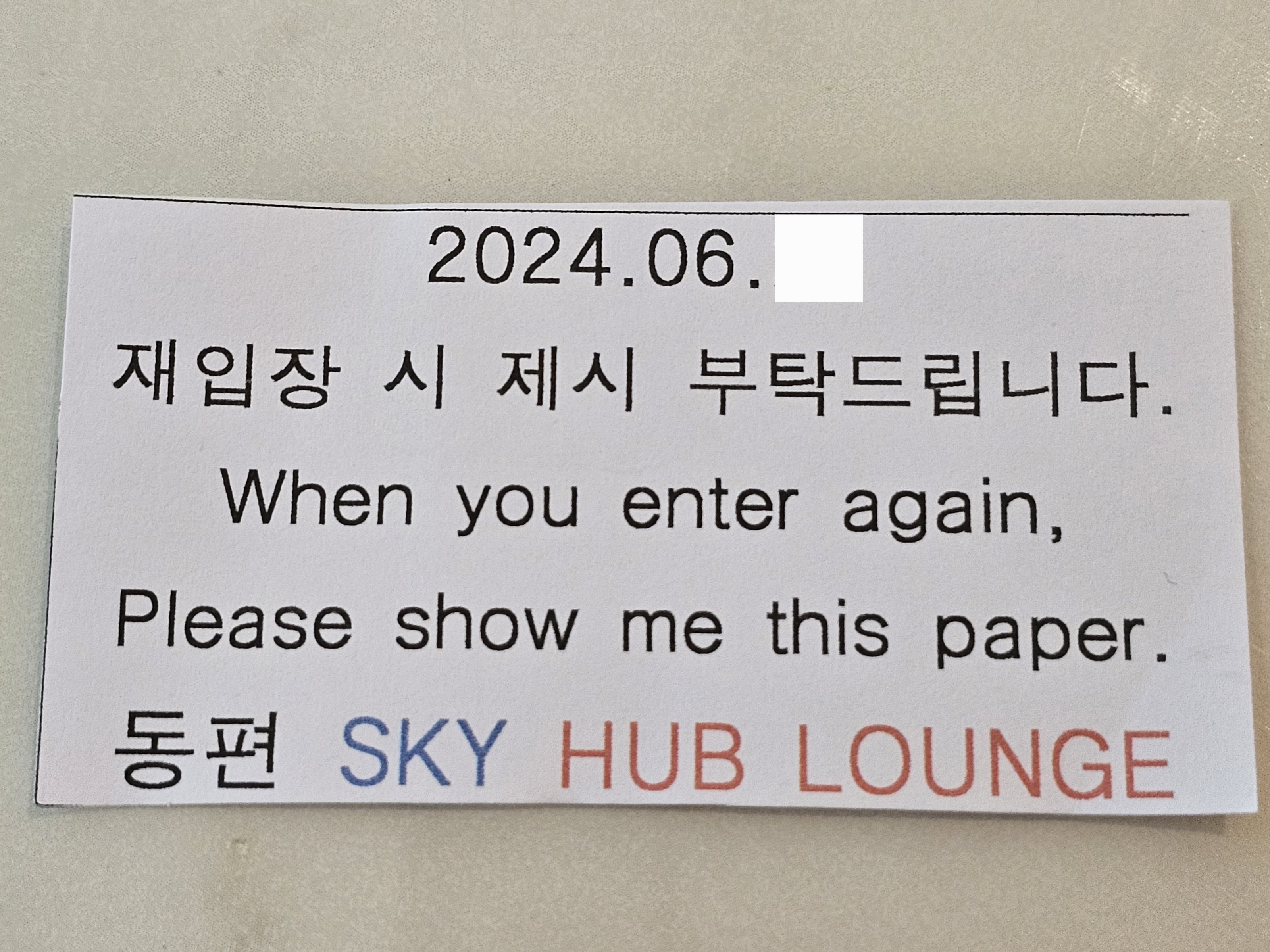 재입장할 때를 대비해 작은 프린트물을 함께 주는데 나갔다 들어올 때 확인 시켜주는 용도다.