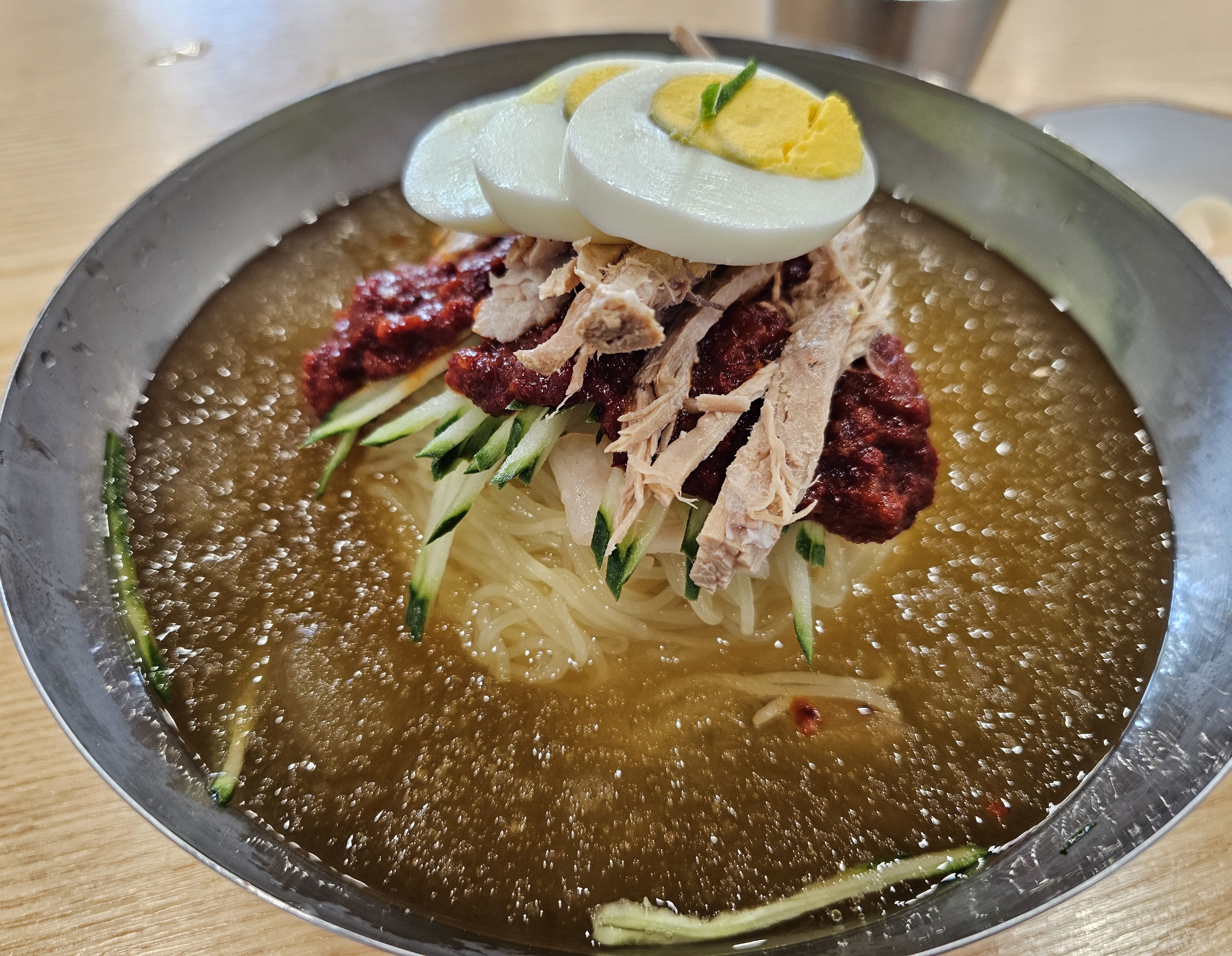 이 집 밀면은 정통적인 스타일에 깔끔한 맛을 내는 밀면이고 육수가 달큰하면서도 깊은 맛과 살얼음 동동 띄워 청량감도 제대로고 취향대로 겨자소스와 식초를 넣어 풍미를 좀 더 올렸다.