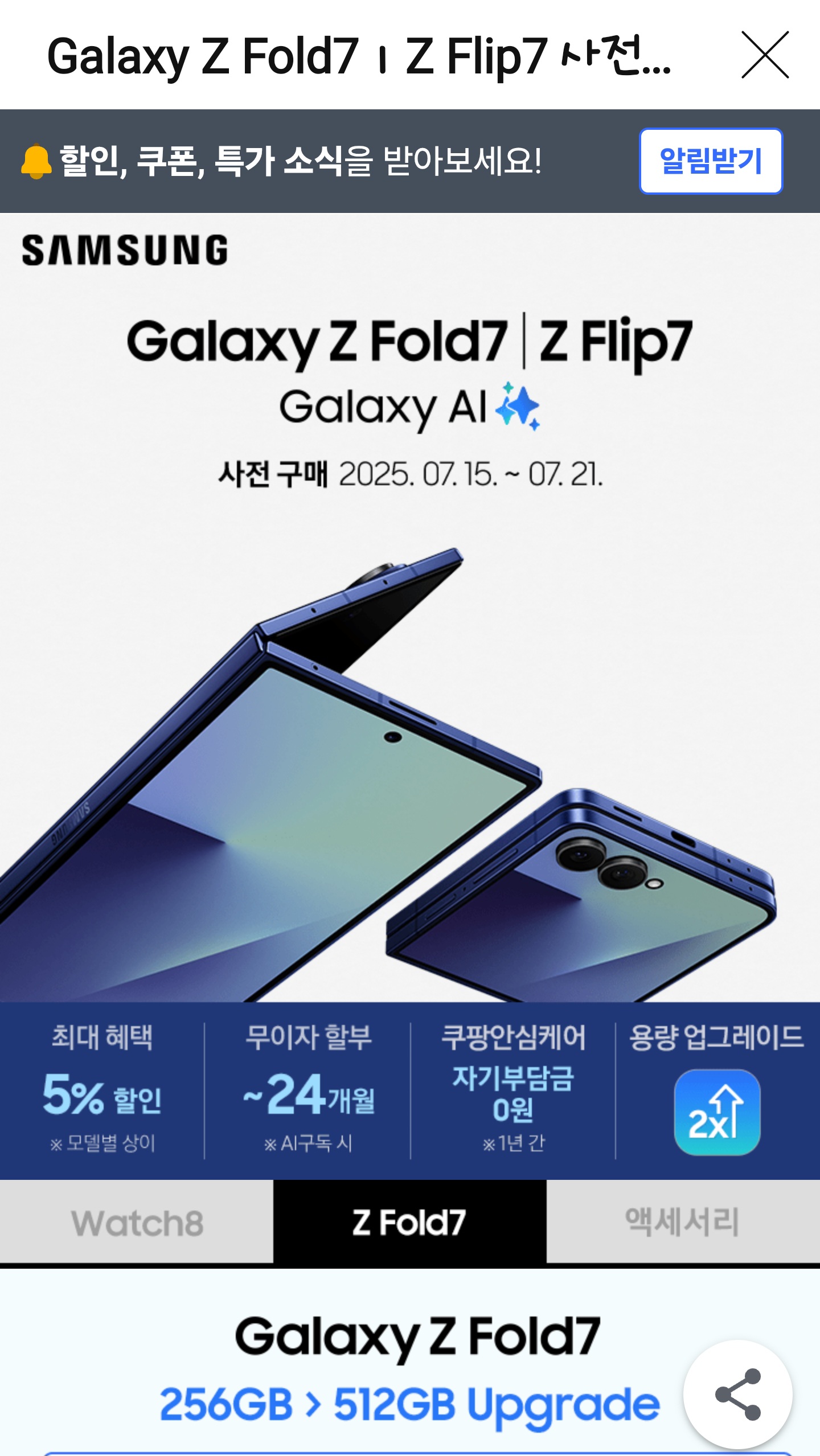 alaxyZFold7/Flip7 Galaxy A / GalaxyZFold7 쿠팡 사전구매 혜택
